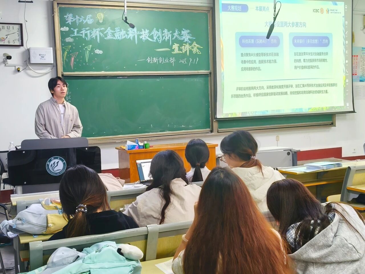 为助力学子把握金融科技创新赛事机遇,激发创新创业活力,9月19日,必赢76net创新创业部于1号教学楼301室举办第十六届“工行杯”全国老员工金融科技创新大赛宣讲会,聊城分行工商银行金融科技部经理一级孙泽龙、王莹受邀担任主讲人,全方位解读大赛细则。